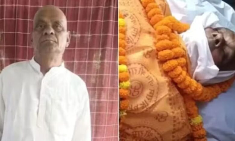 Bihar Air Force Veteran Holds His Own Funeral to See How People Would Honour Him-74-year-old Mohan Lal staged his own funeral in Gaya, lying on a bier in a white shroud.-Villagers joined, chanting “Ram Naam Satya Hai.”-A symbolic effigy was cremated, followed by a community… pic.twitter.com/AwotDxoZor